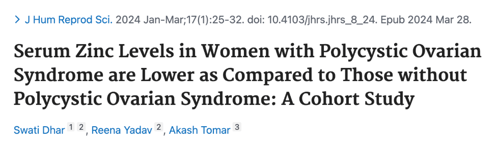 Multiple studies have shown that women with PCOS tend to have low serum zinc levels. Zinc modulates insulin receptors, supports antioxidant defenses, and regulates androgen production, so suboptimal levels can contribute to insulin resistance, inflammation, and elevated testosterone.